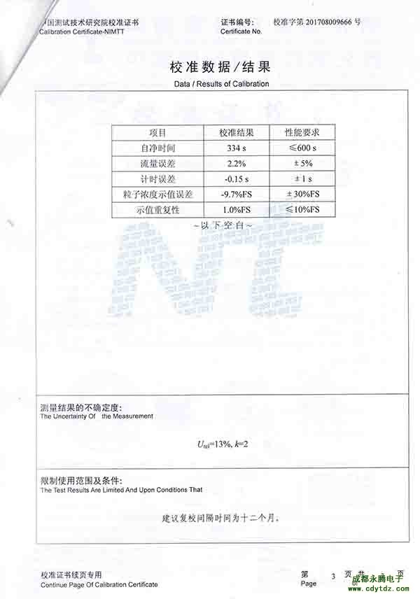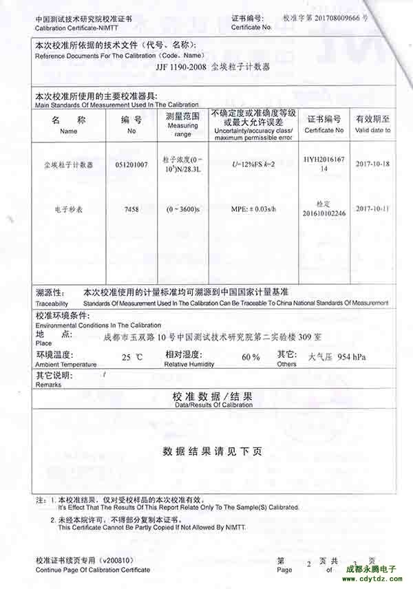 在線塵埃粒子計(jì)數(shù)器檢驗(yàn)報(bào)告書